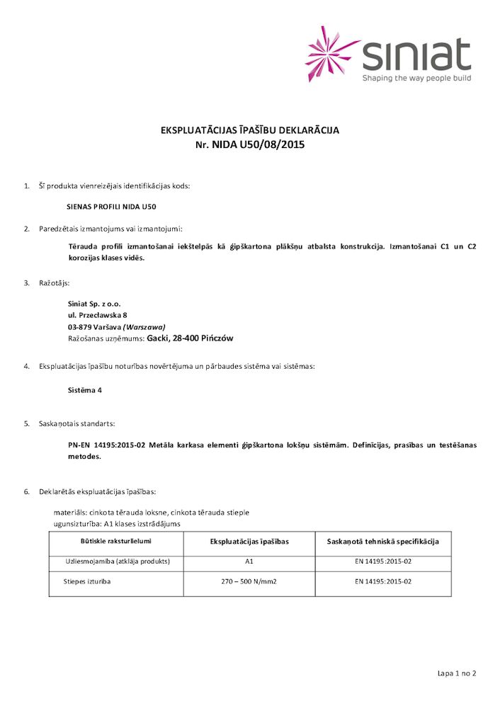Siniat SIENAS PROFILI NIDA U50 LV. DOP
