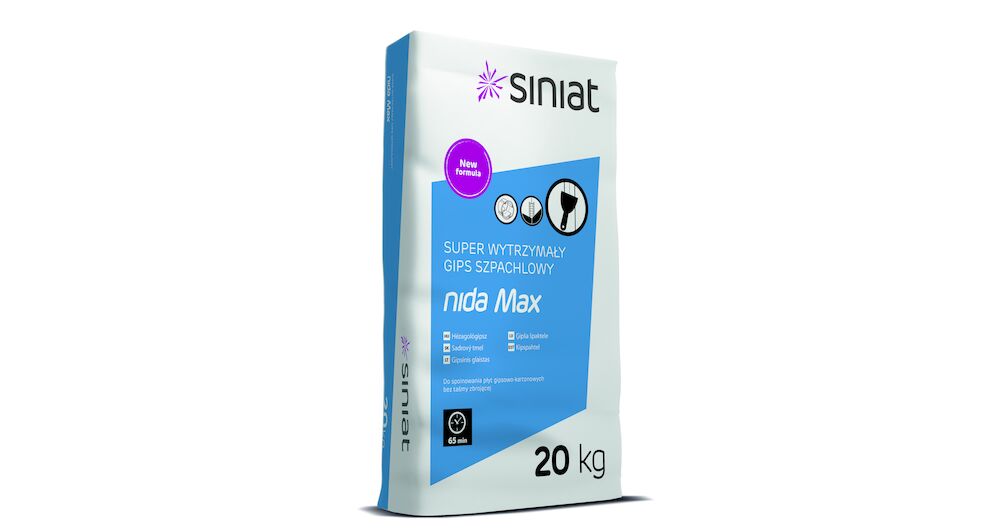 Īpaši izturīga ģipša špaktele NIDA Max ir paredzēta plakano šuvju šuvēm bez armatūras lentēm līdz 6 m augstās sienās, izmantojot NIDA armatūras lenti, savienojums būs 4k stiprāks. Elektrisko kārbu, sienas stūru un cementa virsmu špakteles uzstādīšanai. Lieliski piemērota minerālu virsmu spraugu un plaisu aizpildīšanai. Produktam ir lieliska saķere ar pamatni, tas ir viegli lietojams un lieliski noblīvē blīvēšanas virsmu. Tehniskie dati: derīguma termiņš no izgatavošanas datuma: 9 mēneši; maisījuma proporcijas - 0,55-0,60 l ūdens uz 1 kg produkta; pirmā slāņa maksimālais biezums: līdz 10 mm; Aptuvenais patēriņš: apmēram 0,3 kg / m2; Lietošanas laiks: apmēram 65 min. Špakteles līmenis: Q1, Q2.